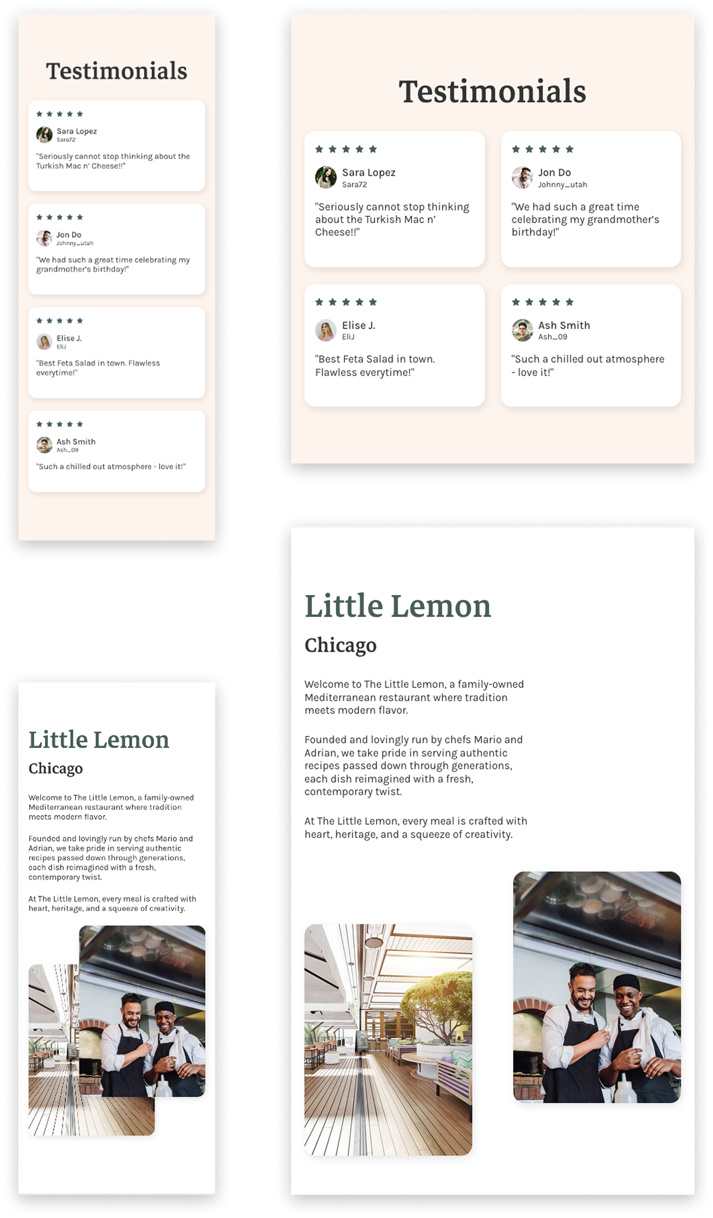 Using the restaurant’s design system, I maintained consistent typography, colors, and component styling while reflecting the brand’s warm, home-like atmosphere.